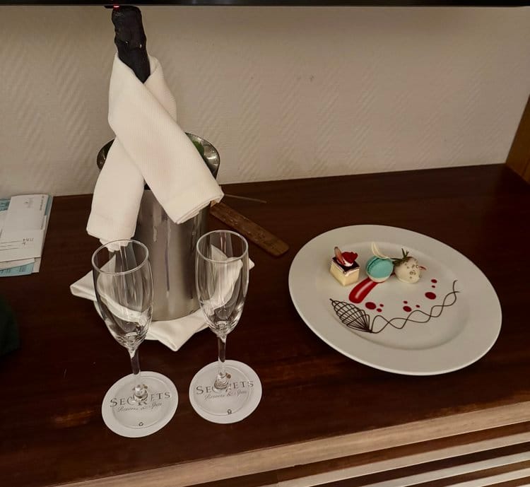 On our most recent visit in July of 2024, we got engaged at the resort, and our concierge met us back at our room after our proposal with a bottle of chilled champagne and a plate of pastries to celebrate. After this first night, he surprised us by leaving a chilled bottle of champagne by our balcony plunge pool each night for the remainder of our stay! This is to say that your concierge will bend over backward to ensure your stay is as special and memorable as possible, especially if you’re celebrating an anniversary, birthday, or other major life events!
